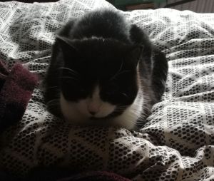 Lose one cat and another one gets more friendly, wants more attention. The trouble is this one comes and sleeps on my thighs or on my bladder in the morning! It’s very difficult as I wake up…. It makes for uncomfortable feelings. Cramp and aches and well… Desperation!