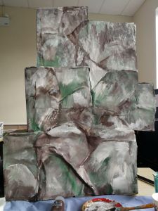 It took me three hours to paint the rocky surface with many rests and sitting down to get my strength back. I’m shattered.
