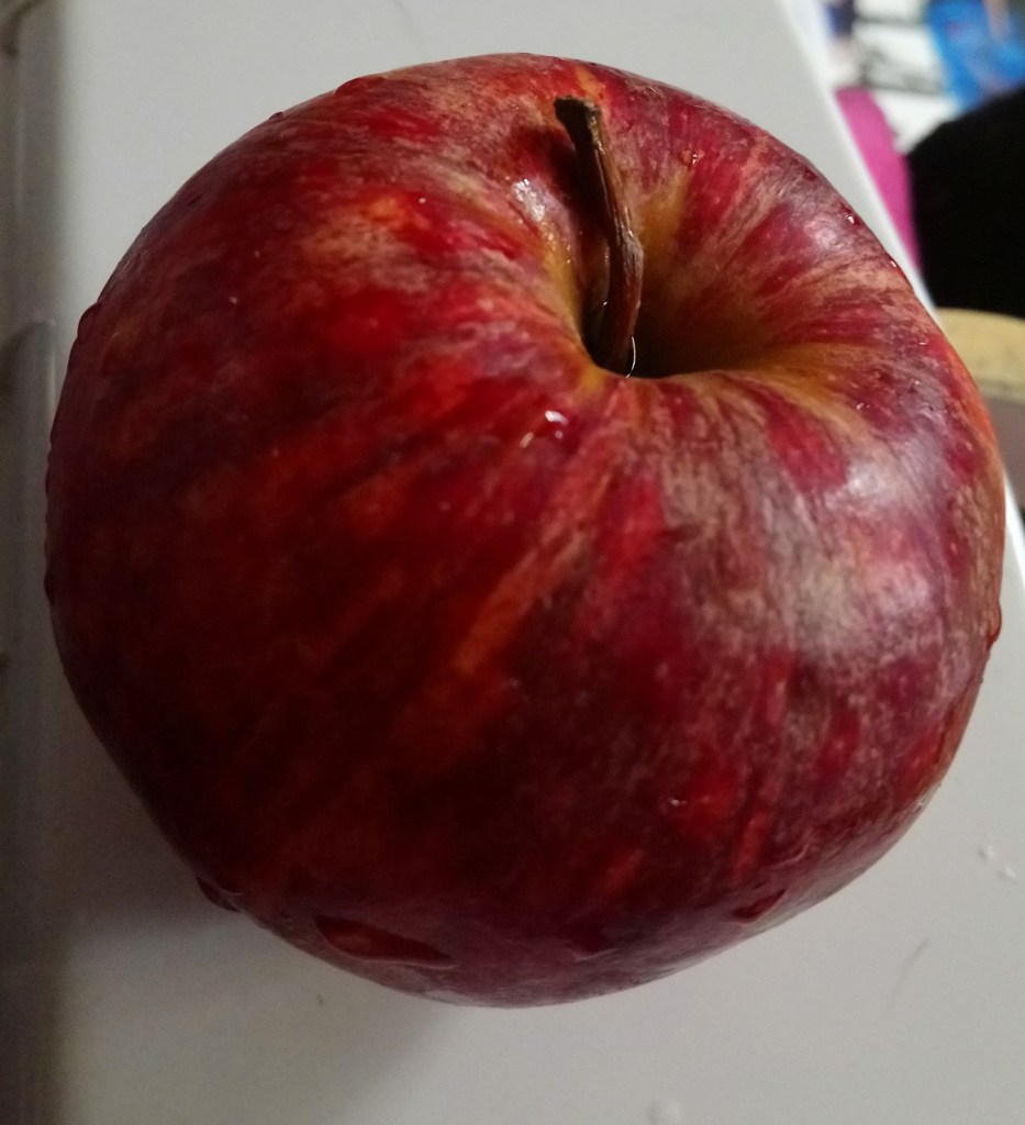 Tasty apple for lunch. There is also a saying, an apple a day keeps the doctor away. But why an apple in Eden? The Bible was written in the countries like Judaea which were roman provinces. The tree of life did not have a specific fruit. It didn’t say what it was in the bible. The fruit didn’t get named until later. So Apples are not evil (never thought they were). Of course you then have stories like Snow white who bit a poisoned apple and could only be revived by the kiss of a Prince. But that wasn’t the apples fault! Anyway there are lots of varieties of apples, this one was a Royal gala which was very tasty.
