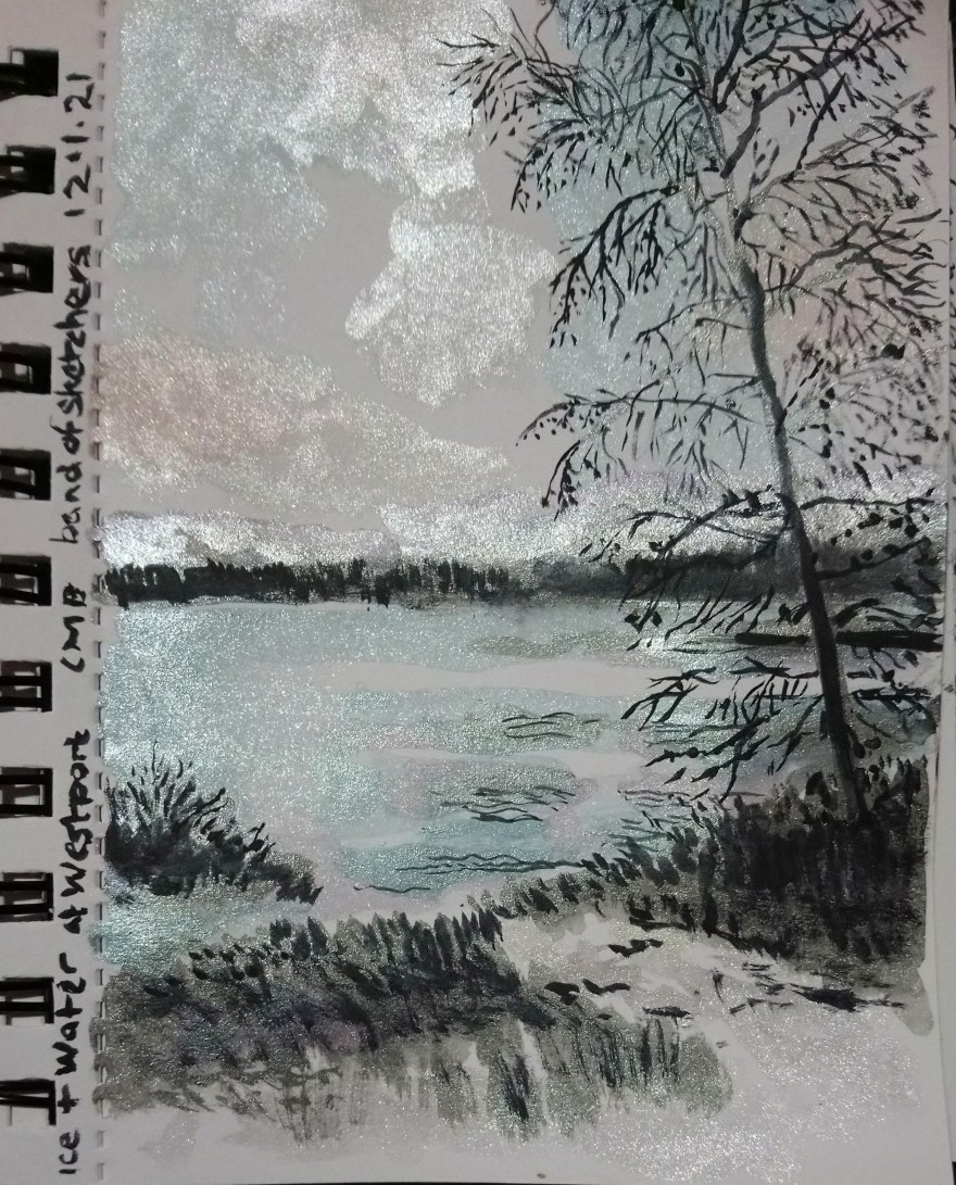I wanted to paint a view of Westport lake with snow and ice so when the prompt water came up for #bandofsketchers I decided to go for it.
