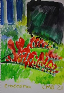 My garden has crocosmia Lucifer growing in it in the late summer, but its several years old now and I think it’s time to get new bulbs so I’ve painted this to remind myself to get some more..