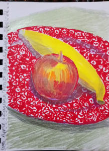 Today’s #bandofsketchers prompt was food so I chose to draw some fruit on a calico pattern Burleigh plate. As I’m not feeling like cooking this was the easiest option….
