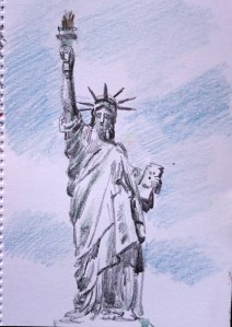 Day 25 #30daysketchbookchallenge since America is in the news I thought I’d draw liberty in the hopes that there will be a bit more care for the world now they have a new President…. I think she looks a bit worried, possibly about the inequality in the world today…..?