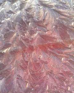Frost on the bonnet of my car. How does it grow like that? Feathers created by a mysterious creature called Jack Frost. Water frozen in amazing patterns, crystallising into flakes or swirls or swooping spirals. Beauty in nature, patterns from tiny water molecules.