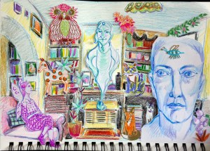 We had to imagine some characters to add to an illustration so I drew these. I’m not sure whether they are OK. I did a large face so it comes forward in the image, a genie that eminates from the gas fire in the illustration and a fairy just taking in the view…