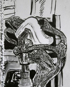 On the corner of my bookcase in the bedroom sits my breathing mask for sleep aponea. Tried to draw it..#bandofsketchers prompt ‘edge,’