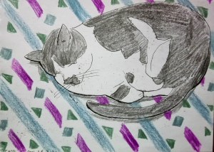 So I couldn’t get the right shapes on his fur, I had to try and remember. I also decided to simplify the pattern on the mat.