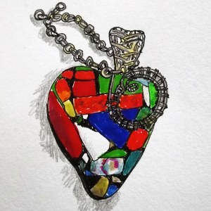 The wire weave and chain is a deep bronze colour, I couldn’t really do it justice. There are coloured glass and metallic effect glass in the cabochon.