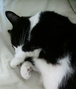 Most of the cats I’ve had are black and white. So called ‘tuxedo’ cats. I think they may be the ‘Jellicles’ cats from the poem by T S Elliott who wrote ‘Old Possums book of Practical Cats’ which the musical ‘Cats’ is based on. I can’t remember much of that poem but it does say something about Jellicles cats ‘dance by the light of the moon’?