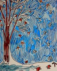 Today’s #bandofsketchers prompt was Shift.., I drew a quick sketch of a tree losing its leaves then snow and snowflakes using felt pens on some photography paper. Finally added digital texture with photodirector to give it cohesion.