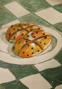 Strange lunch, orange flavoured Hot Cross buns with chocolate chips. We were having a big meal for our dinner and we had a big breakfast so I just wanted a simple, small meal to eat. Today’s #bandofsketchers prompt was Sunday Lunch so I did a quick sketch of these. They were tasty, but I think I prefer the original flavour. Less sweet and with Cinnamon. Also its very early in the year for Hot Cross buns. X
