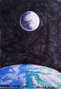 Today’s #bandofsketchers prompt was above. Thinking of above, anything over 5ft 6in is higher than me it could have been tree branches, buildings, Blackpool tower, but I went astronomical, Moon above Earth…, felt pen drawing.