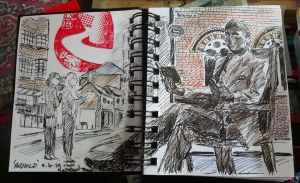 Arnold, sketch from four years ago when I attended the annual urban sketchers meet up that was held in Stoke-on-Trent that year (2019?). Just came up on my Facebook memories. It’s a drawing of the statue of Arnold Bennett which is in our city centre in Hanley.