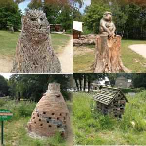 Monkey made by willow weaving, tree trunk carving, bottle kiln shaped bug hotel and a large house shaped bug hotel. These are in the entrance compound of the Monkey Forest before you actually walk around the money enclosure. It’s interesting to see the different ideas that the sculptors have come up with.