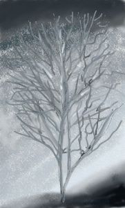 Digital finger painting. Prompt was misty. Drawn in the Artrage app. I decided to draw a grey landscape. I used various pens in the app to get the softness.