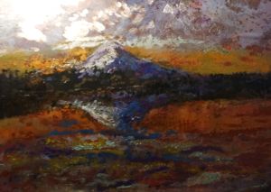 I decided to try and improve this painting because it was too reflective and the metallic copper sheet it was painted on was showing through too much. I seem to have worked reasonably well but it took effort to get the acrylic paint to stick onto the surface, but that was the problem on the original picture. Acrylic on a metallic surface.