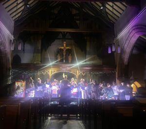 I just found this photo taken in the church when we performed jolly and merry songs for Christmas. When you are in the choir stalls you don’t know what the place looks like. I didn’t realise it looked so sparkly.
