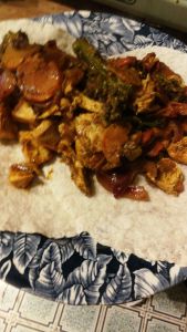Curry splodge for tea. I like to cook but I struggle to cut things up as Parkinsons shaking makes it hard to hold the knife. It tasted nice though. I buy odd shaped veg so I guess it doesn’t matter how it looks. Had no nan or roti bread so used tortillas instead.