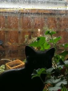 The rain continued and the raindrops splattered my window, the drips from the gutter splashed down onto me as I opened the front door to get the milk bottles in. Water was running down the road and overflowing the drains.