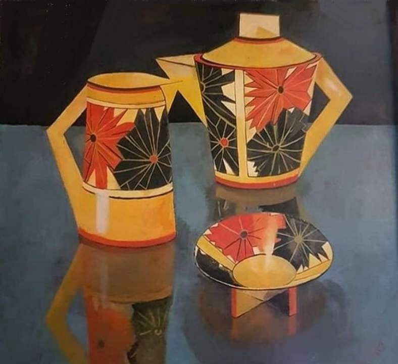 There were pattern books for tableware and tiles ledgers with the cost of making the ware and details of workers. The old pottery firms did not collect a lot of details and a lot was thrown out when they closed down. But once we had been in the air conditioned archives we were allowed to sit and (very carefully) look at selected pattern books including prints of tiles to surround hearths, doorways and floors. Some were mundane but others were breathtaking. Art nouveau and art deco masterpieces.