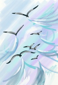Doodle of faces in profile and full face. Artrage doodled finger painting. I like adding layers and this app has different pens. I the past I just used the free Artrage oils app which just had synthetic oil paint texture, but this has spray paint, glitter, various other pens and brushes. It’s fun to use. You can also add metallic touches.