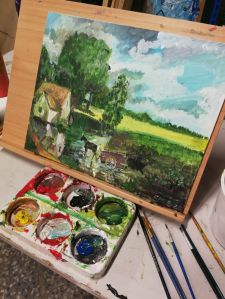 When I paint I lose track of time, the world goes away. Sometimes I lose myself completely. I know I feel pain in my arms nowadays, and I can’t always focus on the tip of my brush because I get slight double vision. But I have to do it. I’m under a compulsion to spread liquid onto a hard or soft surface (board, wall, or canvas) and recreate images or come up with ideas of my own….