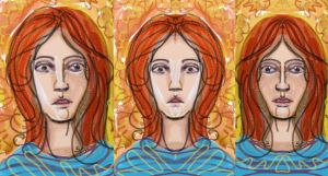 #bandofsketchers prompt neighbour, Playing with sketches, turning one face into two symmetrical but different faces. Digital drawing.
