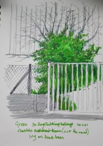 The tree across the road a few years ago. Covered in ivy. This was drawn for an old #bandofsketchers prompt. The prompt was ivy.