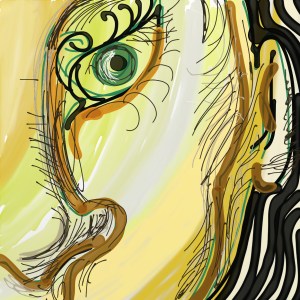 Artrage doodle of an eye and nose, just playing with colour and line thicknesses. I liked the combination of yellow, beige and green and brown. I wanted it to look like a lino cut print. I used different pens to create the image.