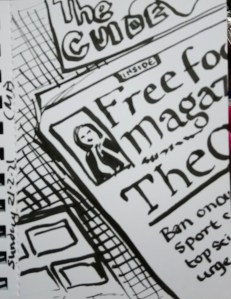 Another quick sketch. When I’m busy it’s good to just get something down on paper, even if it is only a few lines. This was done with a calligraphy marker pen. I just drew our Sunday paper, although I didn’t get time to read it. So much going on in the world, even without covid19. Planes engines on fire, princesses possibly falsely imprisoned. Politics and uprisings. Tomorrow this will be yesterday’s news….