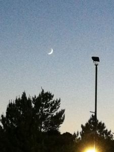 I managed to capture this image of the new moon last night about 10.30 pm British Summer Time. I don’t know how I managed to hold the camera still enough to get a reasonably sharp image. I haven’t adjusted it in any way.