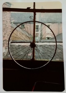 This was taken in the 1980s when I was at college I remember. I think it was done with a pin hole camera? Take a sheet of photographic paper and put it in a tin with a tiny pin hole in it in a darkened room. Have a flap of paper or card to cover the hole, then you can take a photo by removing the cover over the pin hole. You will need to experiment with exposures because the paper will react to light. You need to know how quickly the paper will darken. Once the picture is taken you cover the pin hole again and develop the picture. As it’s 40 years since I did this I don’t remember what the chemicals are that you need. I do remember that if you are developing film you have to take it off the reel in complete darkness and you end up with a negative which you then project onto photographic paper. With a pin hole camera you use black and white paper and the image comes out as a positive picture.