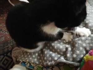 No sooner had the big cat got out of the box then the small cat got in! Middle cat slept in it last night, I didn’t think to take a photo of him in the darkness.