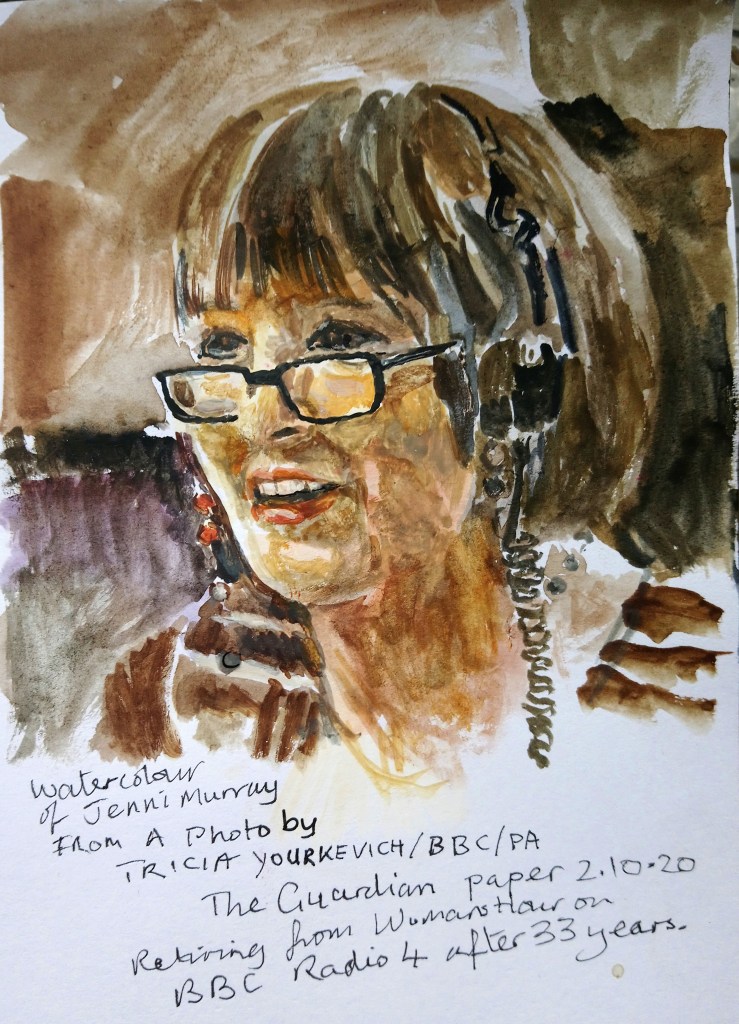 I hope Jenni Murray doesn’t mind me painting her. I have followed Woman’s Hour for years and have always found her to be an intelligent, warm and humourous host.
