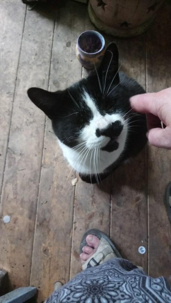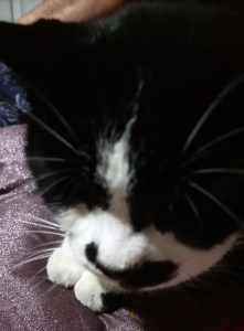 He’s on my knee at the moment, purring. I thought I was going to lose him last week but I’ve been trying to pursuade him to eat and this seems to be working. He’s gone from just a liquid diet to a few solids. Tonight he had a bit of white fish, then he ate some kibbles. Later he ate a bit of normal soft cat food and then some soft pate style food with a gravy on top. Now he’s had a few treats! He still has to have medication but it’s good to see him eating again x.