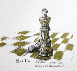 I can’t spell Sicilian…. Today’s #bandofsketchers prompt was defence. I didn’t want to draw an army or war image, so I looked at chess. I don’t know how the Sicilian defence works but it seemed like a good idea. Just a felt pen drawing.