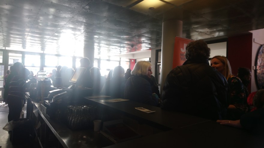 The day started early at a local theatre, groups went off to various changing rooms, bars and the auditorium to learn new songs and vocal techniques. In the same way as artists have different styles so do musicians. The first workshop I attended was called “joy” and it was joyful and bonkers. Fast cheery tunes and ” jazz hands”, it woke us up and some of us even threatened to join the teachers choir. The second workshop I went to was called “raise your voice” and helped us to harmonise and listen to each other while we learnt two folk songs.