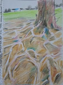 Drawing of the tree roots around the base of a tree at the Croft. Today’s #bandofsketchers prompt was around. Boldmere colouring pencils on cartridge paper.