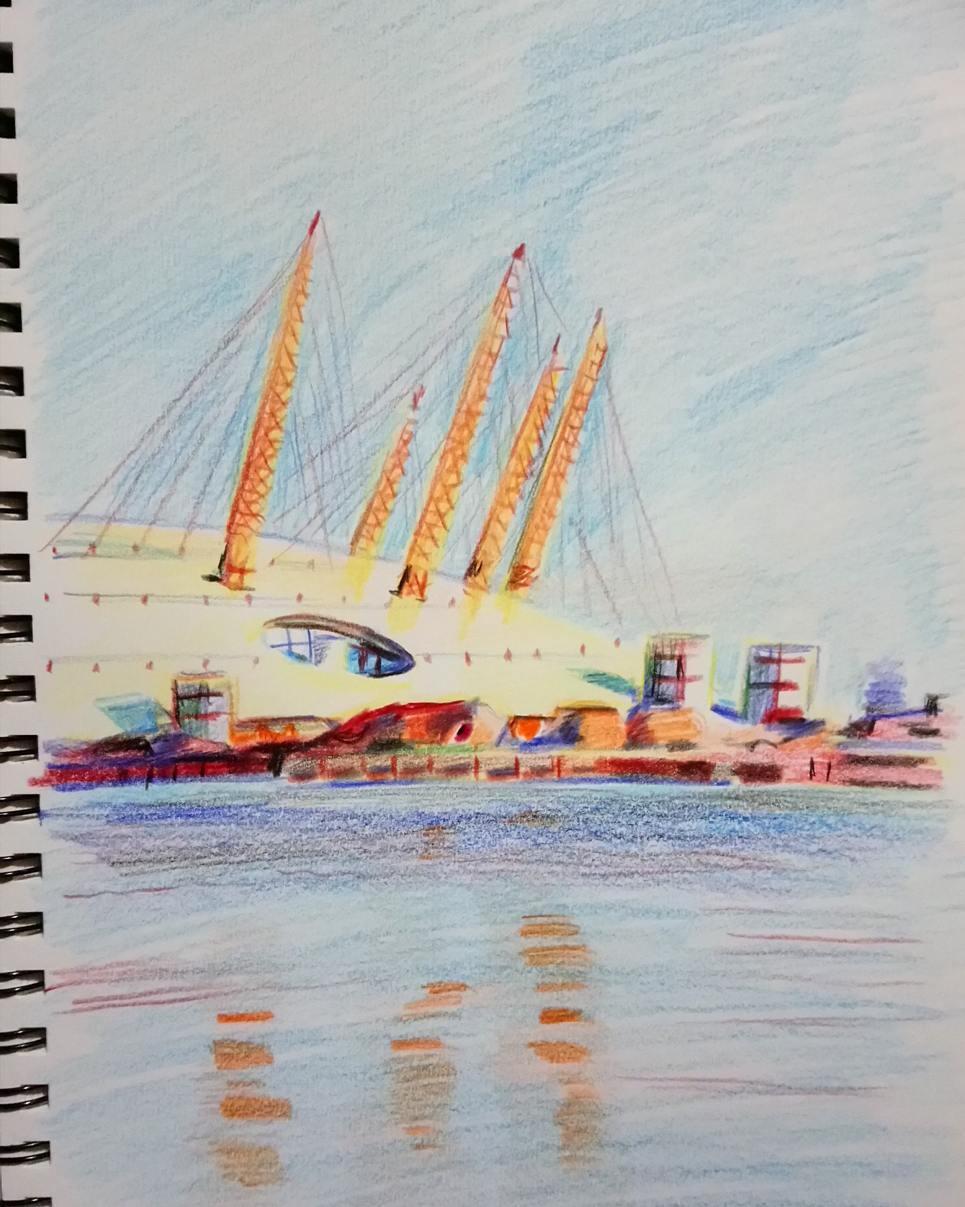Watching…… #skylandscapeartistoftheyearfinal so tried to draw the millennium dome. Only took 45 minutes from an online photo so I can watch the last quarter of an hour. X