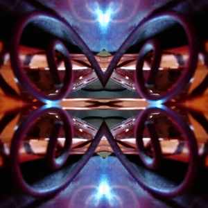 Close up photo of a metal ring holder and a copper coloured stapler. It’s interesting what you can do with duplicated photos. I didn’t know it was going to look like this. It looks like architecture or a space ship with a distant galaxy reflected on the shining floor of the ship. I will play with some more images, juxtaposing different shapes, textures, and colours.