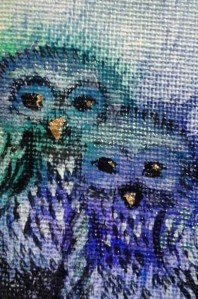 A small turquoise and blue painting of two owls I painted a few years ago. I want to do a few more like this, semi realistic but with a bit of quirkiness.