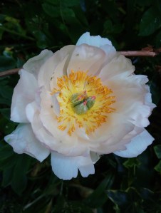 Our old peonies didn’t flower this spring but a new peony has come into bloom and its a pale creamy pin. Is a bright spot in a very overgrown jungle! Hubby asked if it was a poppy and I thought it would be until he showed it to me. I don’t even remember planting it.