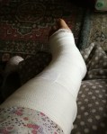 A few weeks ago I spilt some bleach on my favourite trousers. I’ve been meaning to do something about it, so today I plucked up courage and got my black acrylic paint out. I put a book inside them so the paint wouldn’t show through on the other side then carefully painted the orange tinted bleached areas. What do you think? I think it’s turned out rather good!