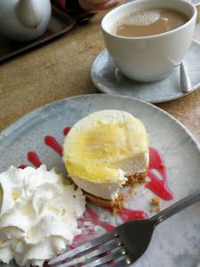 Afternoon tea. Why do we post photos of food. This was lovely, tart and served cold with cream. Best cheesecake I’ve had in years. Plus a nice cup of tea.