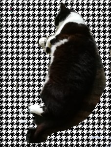 I love cats , they can be good companions and they are not as aloof as they are sometimes portrayed. I used Houndstooth check which seemed like a good choice. I should really try doing this in photoshop but I’m too tired to fire up my PC.