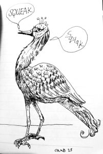 I love my little notebook, getting filled up with sketches and doodles and bits of writing prompts. This bird recently appeared squeaking and squaking (odd word spelling I know) on the page. With this drawing comes memories of drawing odd bits when I was a child. I used to try and draw butterflies and moths and horses too. It is about learning to draw and freeing your imagination. Art is life!
