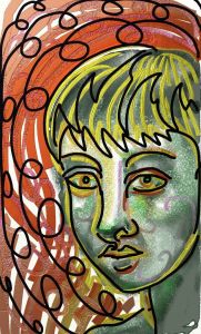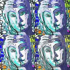 Digital playtime again. I used the curved lines drawing as a basis for this. I had fun with textures and patterns. Finger painting in the Artrage app. Then I ran it through the photodirector app on my phone. I’m not sure who the face is x