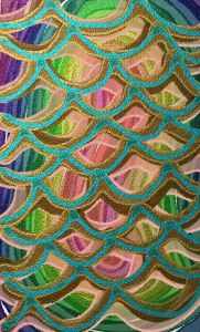“fishscales” Artrage app, digital drawing I’ve just completed this using metallic and non metallic pens. I love this app. It feels like a truly free way of using digital methods.