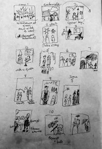 Drew a story Board for the Penkhull Mysteries today, started by drawing in the back of an envelope then did better A4 sketches.