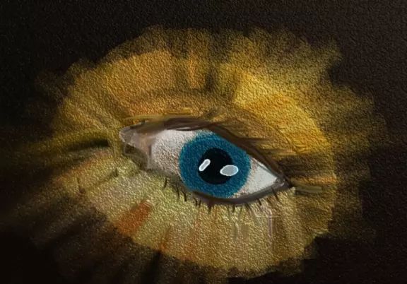 I’ve jut tried to alter the drawing of a gold bangle I drew for another post. I’ve smudged the outside and added white to the centre then a blue pupil with white highlights. I also rotated the image by 90°.
